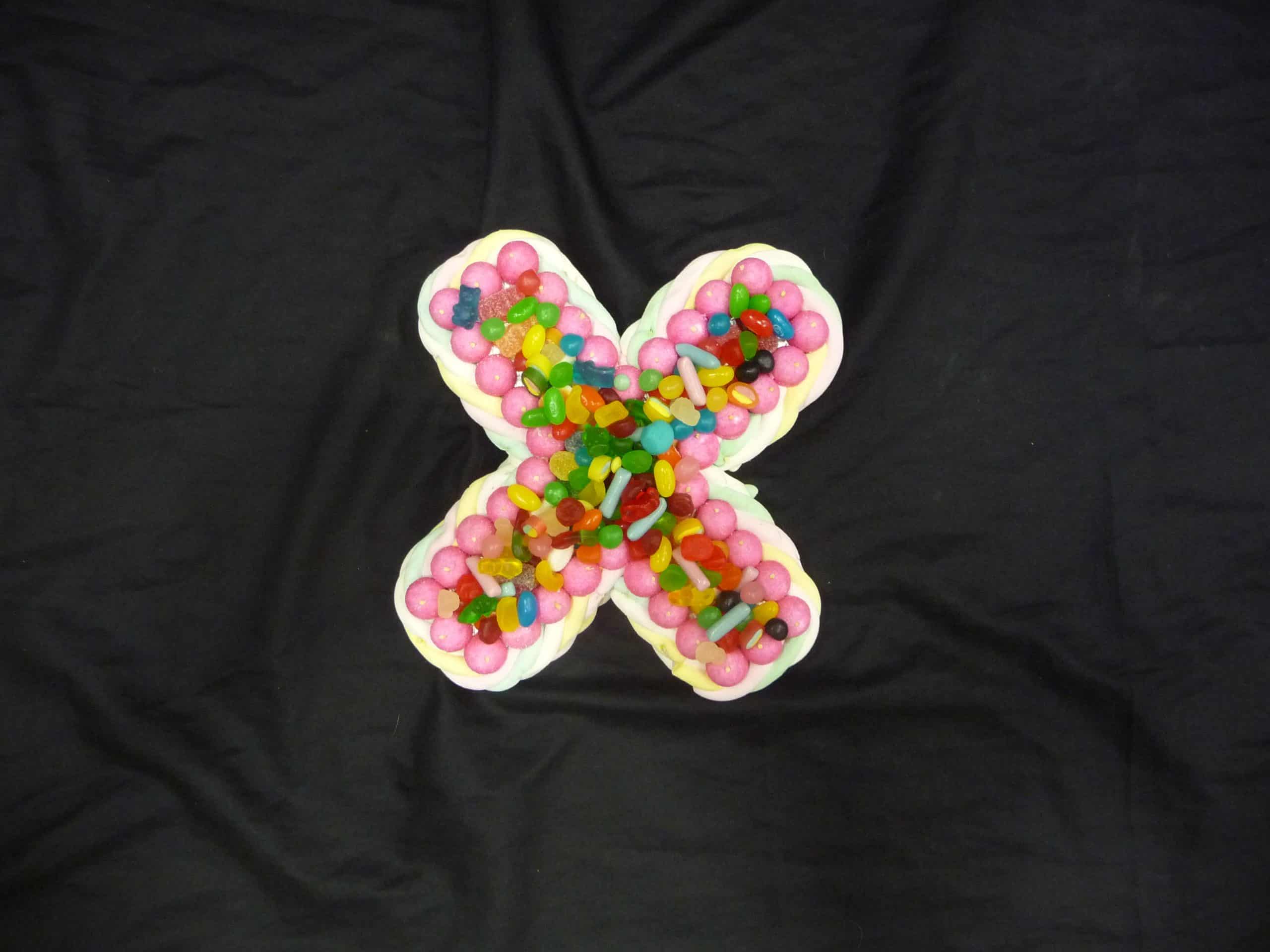 Gâteau de bonbons en forme de lettre ” X “, contenant au minimum 700g de bonbons. Contour en marshmallow avec à l’intérieur des minis confiseries de 10 variétés différentes.