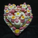 Gâteau de bonbons en forme de seringue. Contour en marshmallow. Intérieur garni d’un mélange d’une quinzaine de variétés de petites confiseries.